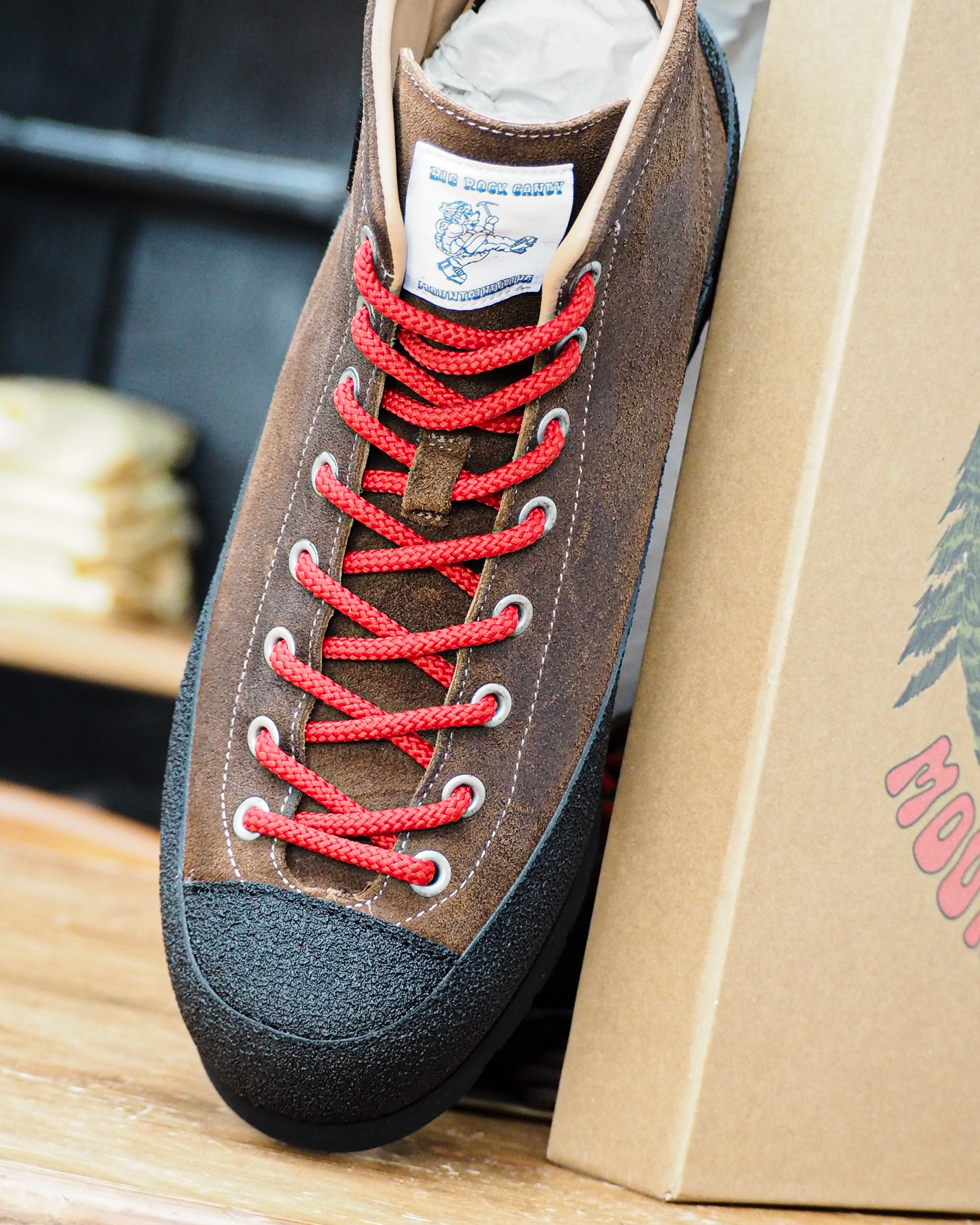 ブーツの原型はヨセミテ渓谷のオールドスクールクライマーにとってマストハブアイテムとなったヴァラッペスタイル。現代のクライミングシューズの礎となったのもうなずけます。