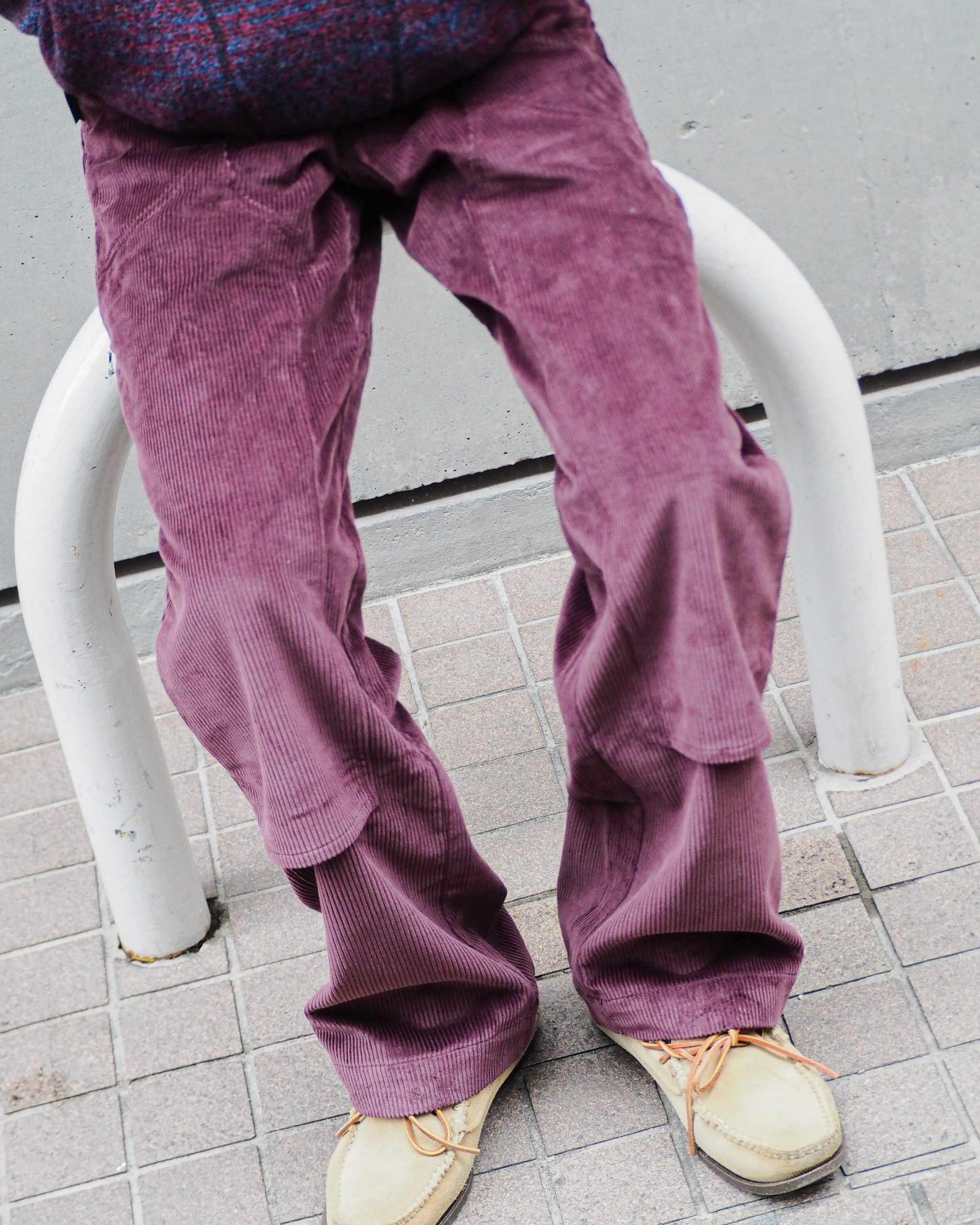 ズドンと太めのシルエットから大きくとられたダブルニーは、これまたあの名作をオマージュです。ヴィンテージディガーの皆様はピンときた方も多いはず。