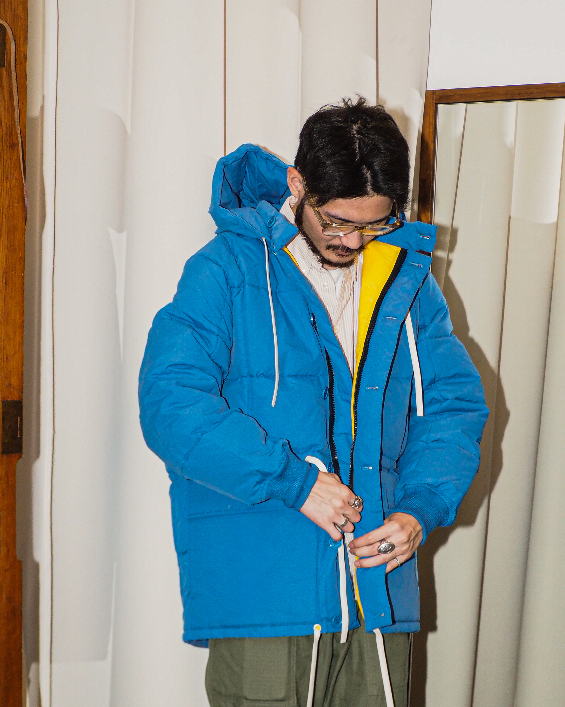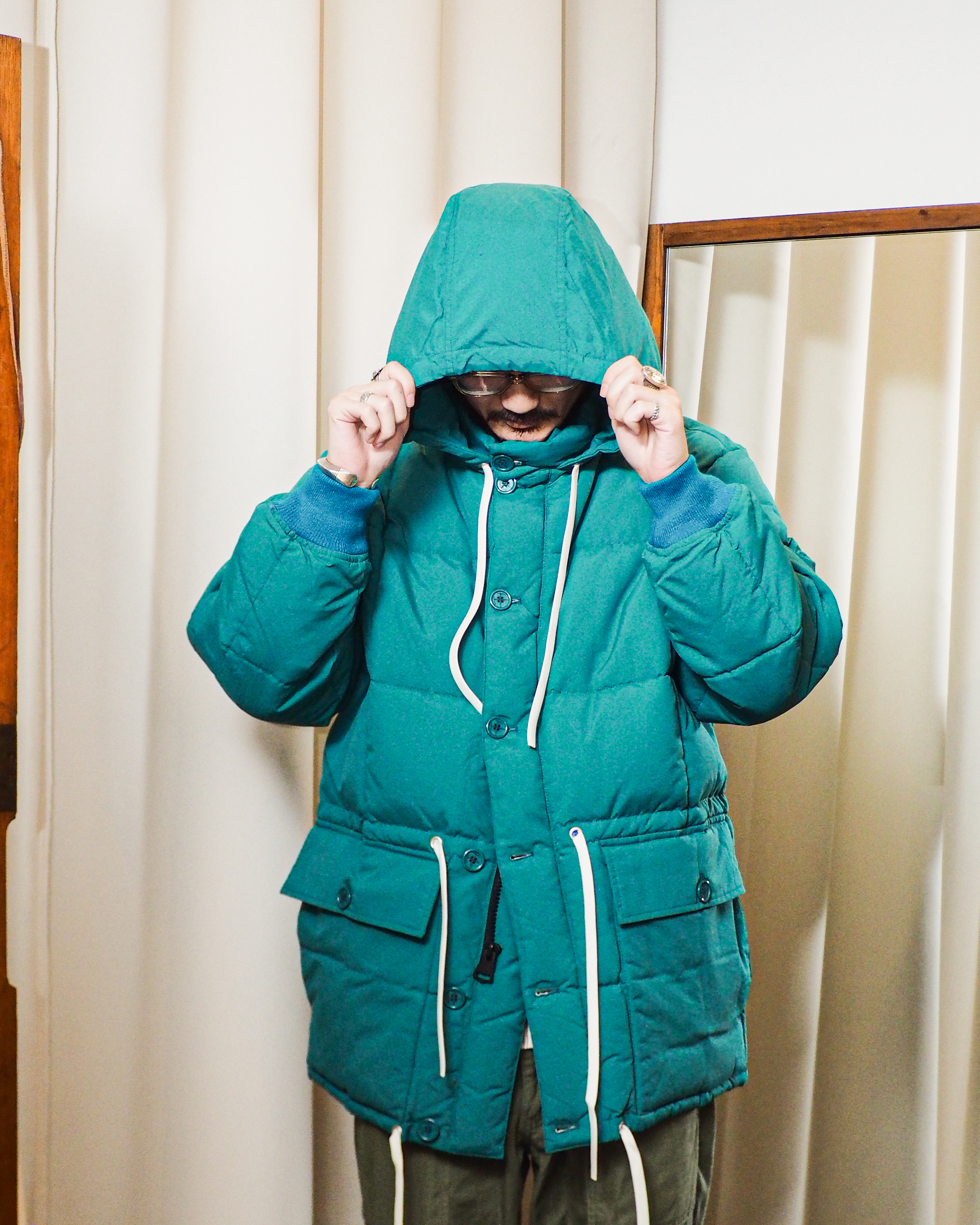 ルックブックには先のALPINE JACKETとこちらのダウンジャケットを重ね着している写真がありましたが、なかなか良い…