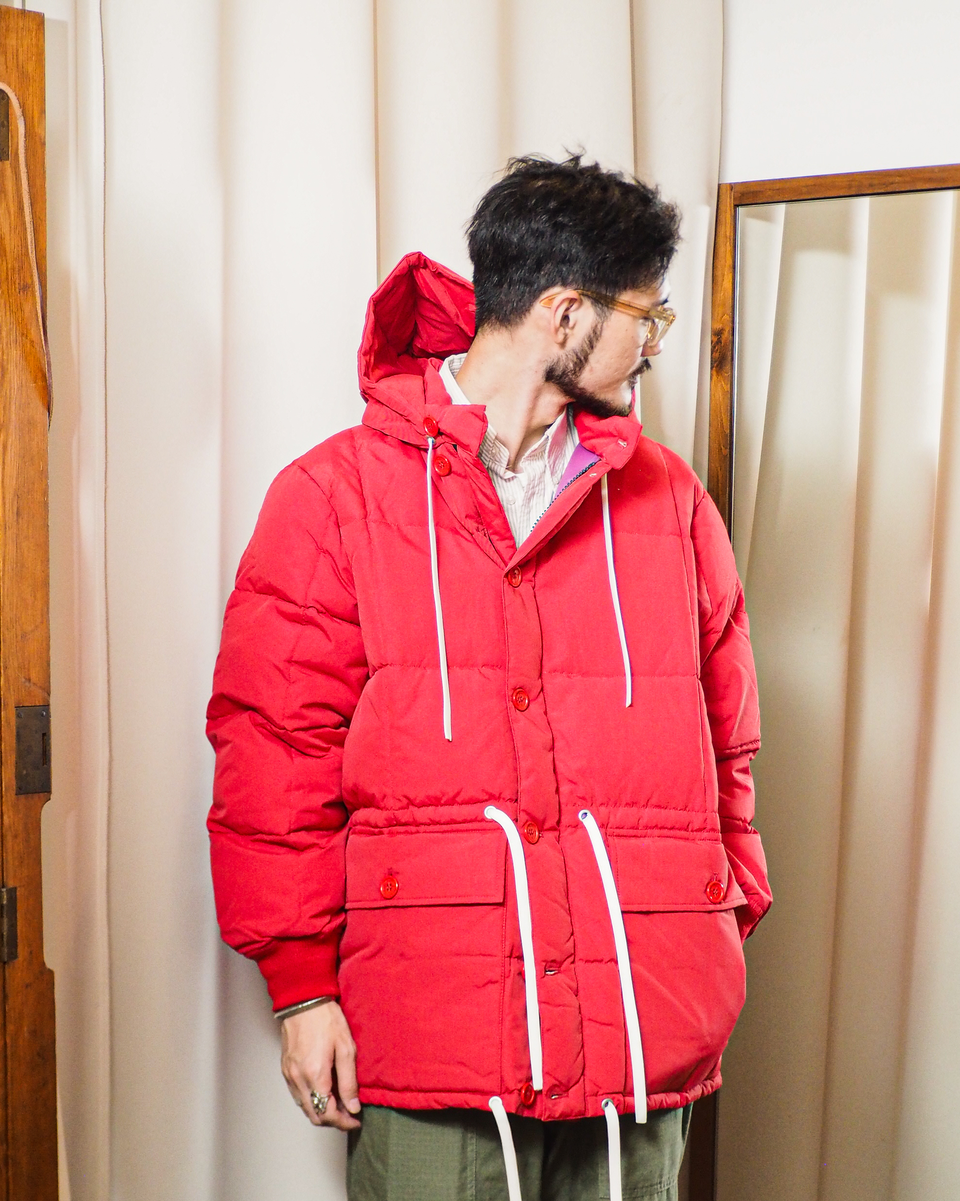 こちらも昨年から継続のダウンジャケット。某ブランドの名作ジャケットがモチーフになっていることは、去年のブログでも触れた気はしますので深堀りはしません。ただし元ネタそそのままづかいでは無く、小さいながらも随所にアップデートが加えられており、しかもその仕様が邪魔になることはない完璧なバランス。こういった部分でこのブランドは私たちをぐっと来させてくるのでしょうね…