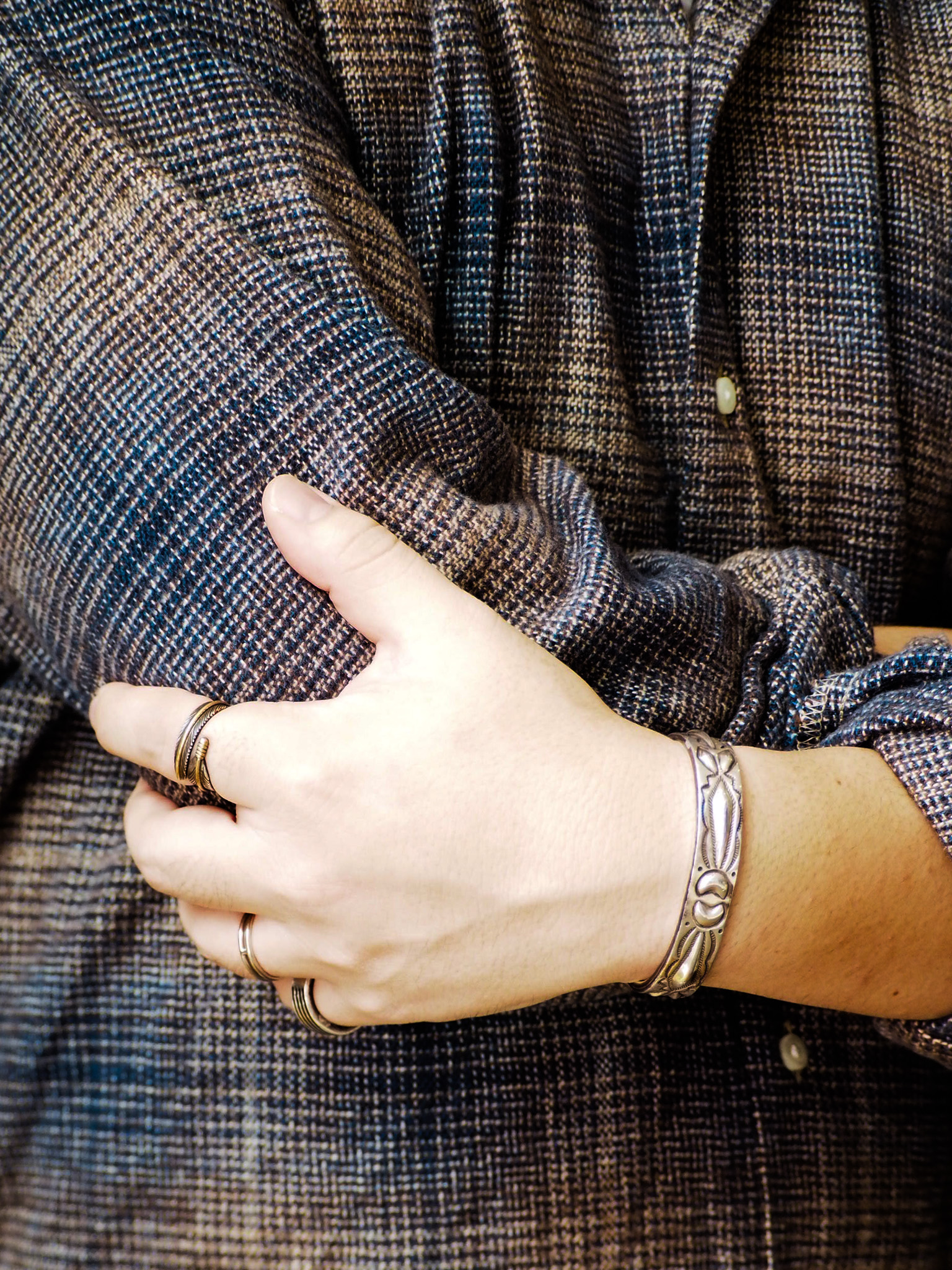 当たり前かのように左右均等に統一された幅であることが、彼女のジュエリーづくりの腕の証明とも言えます。